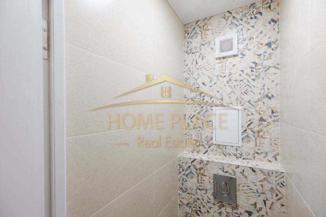 -Изцяло подменени ВиК и електроинсталации Баня и тоалетна с висококачествени испански плочки. Смесител за мивка Roca, душ и смесители Grohe Вградена структура Grohe в тоалетната
