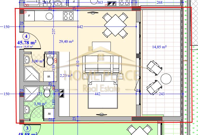 Функционално помещение в което умело може да се обособят дневната зона с кухненски бокс и спалня