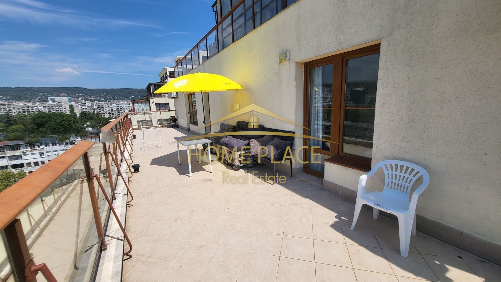 Разположен е на 8-ми етаж в сграда с асансьор и е с площ 160 кв.м., разпределението на имота е както следва - всекидневна с кухненски бокс, две спални, баня и тоалетна, тераса.